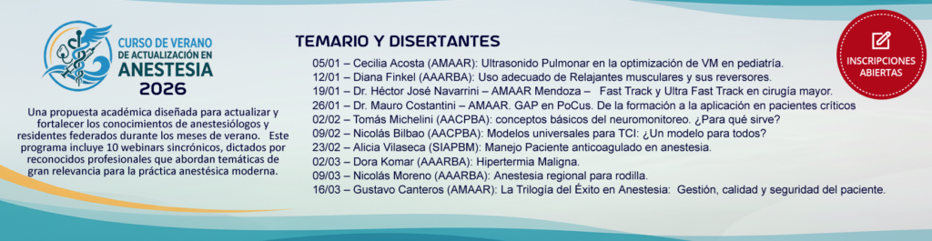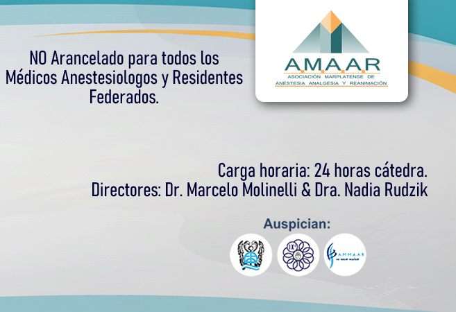 La Asociación Marplatense de Anestesia, Analgesia y Reanimación (AMAAR) organiza el «Curso de Verano de Actualización en Anestesia 2026». El ciclo cuenta con el auspicio de FAAAAR.